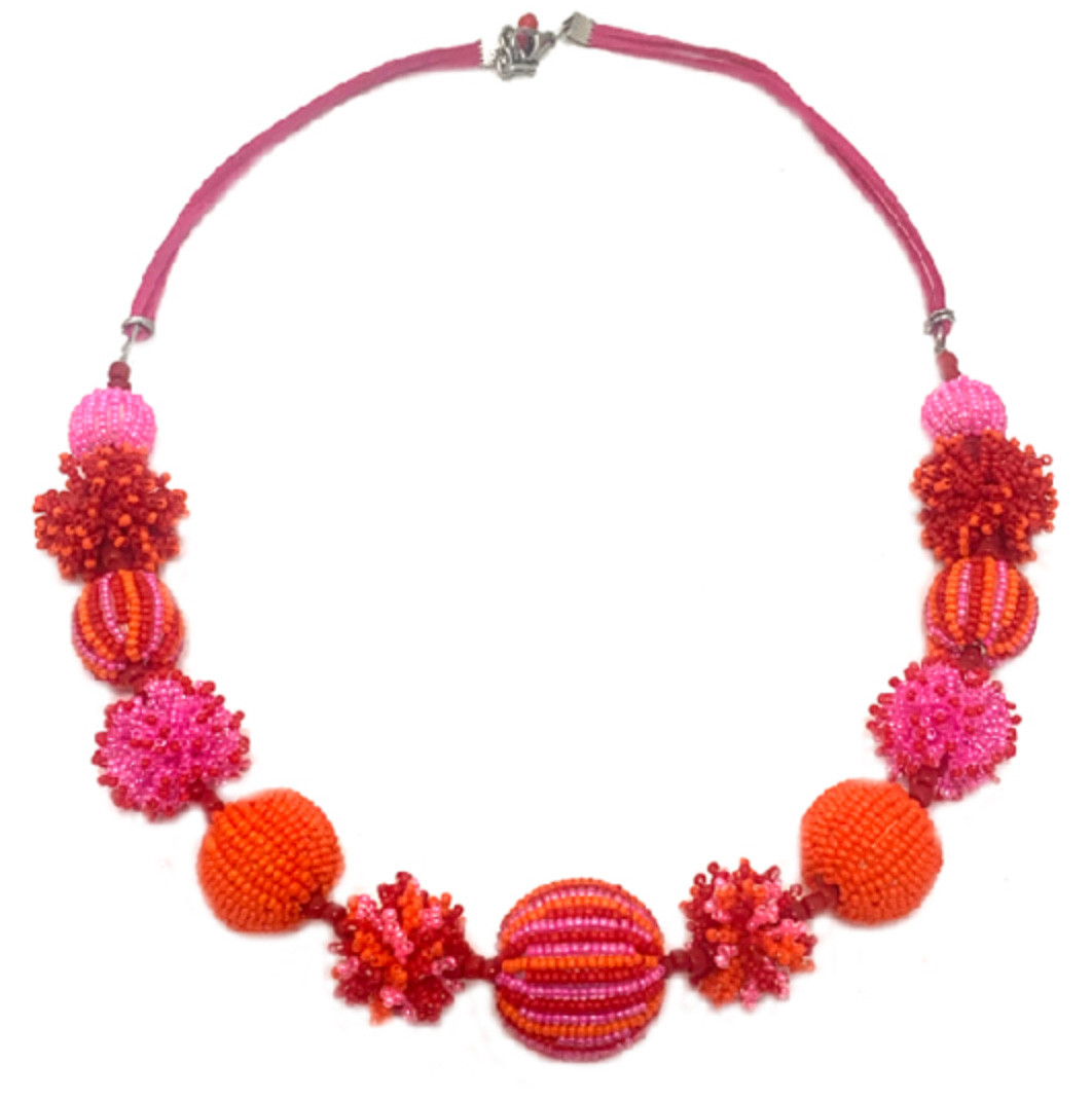 Juju Beadwork- Pink PomPom Twisted Earring