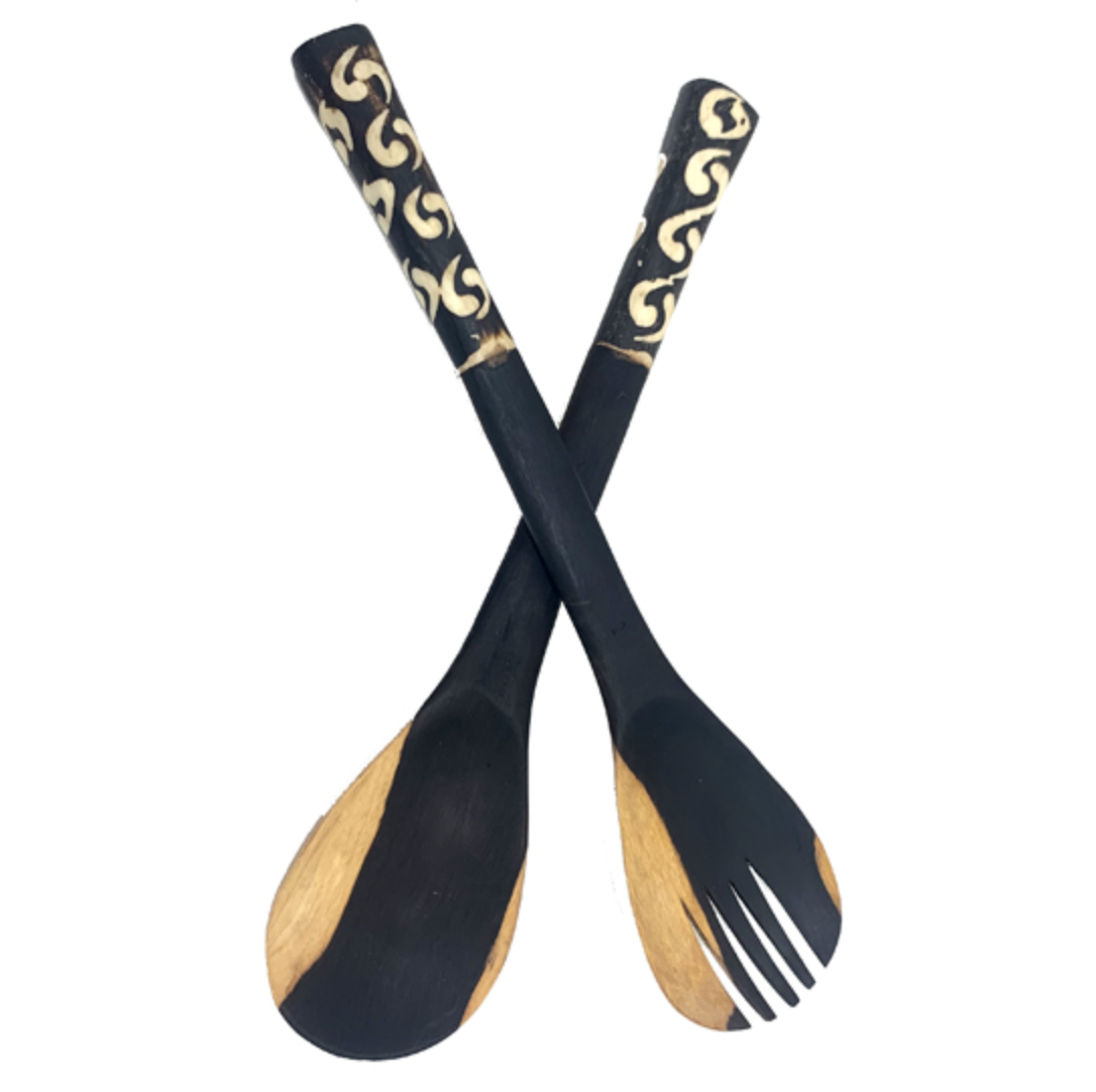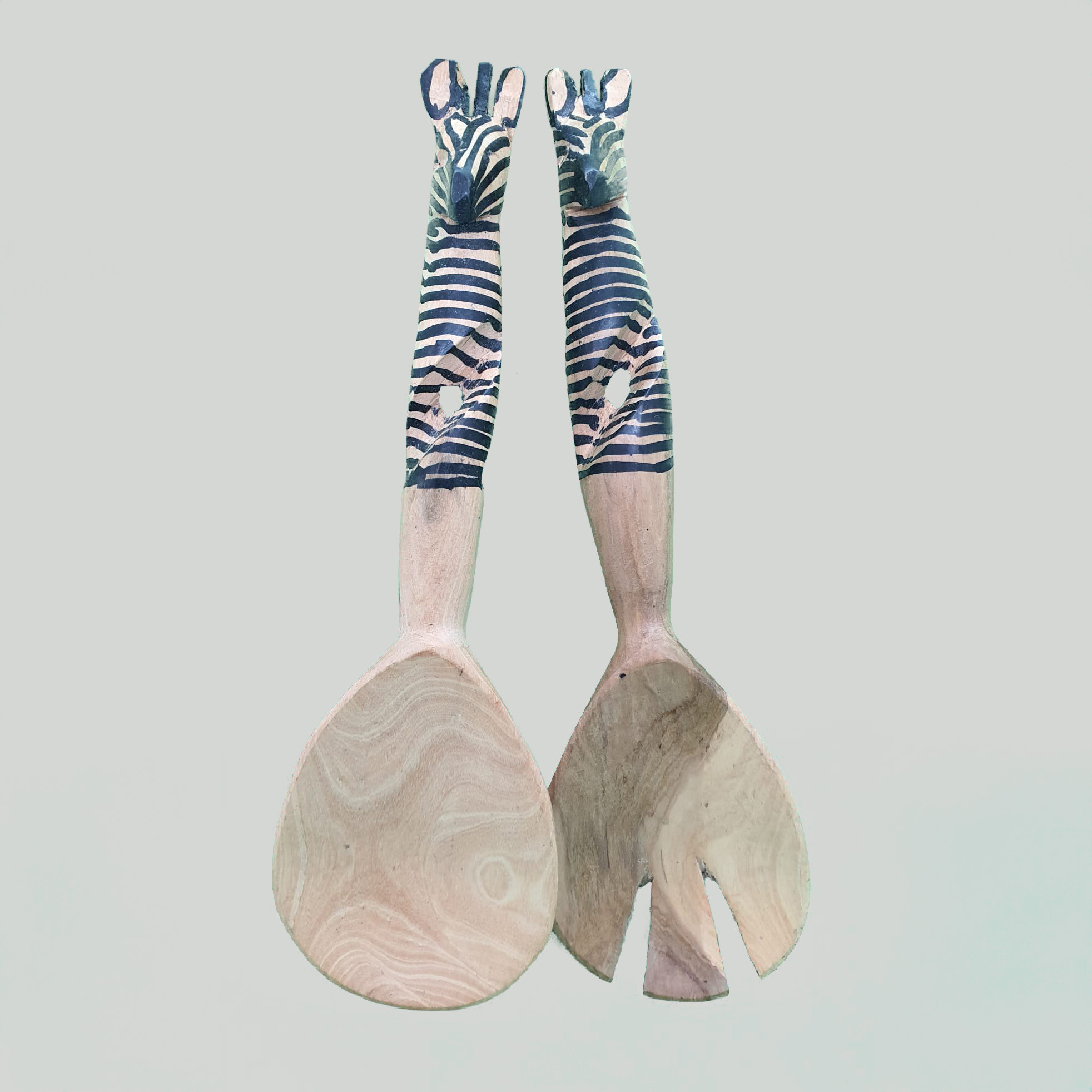 The carvers from the Kamba tribe obtain permits and supplement their agricultural income through carving. Discarded bone is bleached and dyed using the batik process, before being used for handles and decorations.